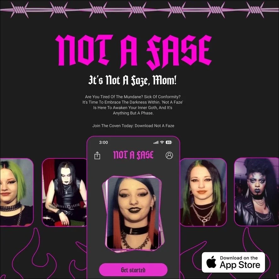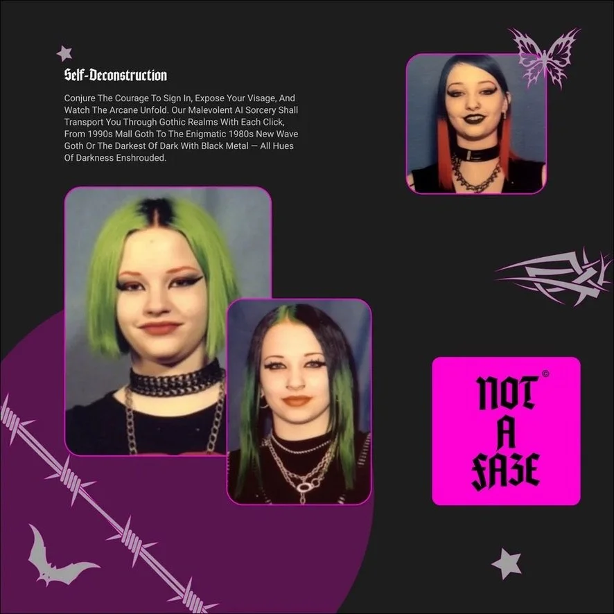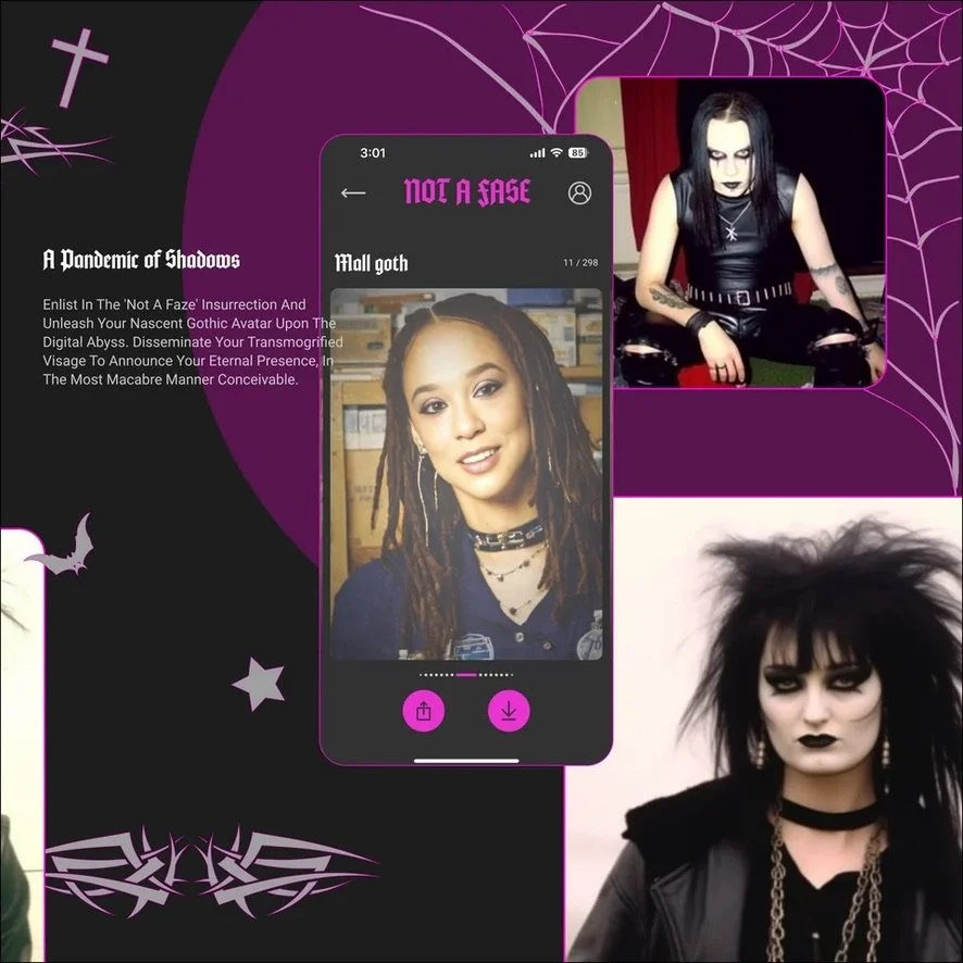 Not A Faze, the innovative new app utilizing AI technology to transform selfies into various GOTH-inspired looks, announces its launch in February of 2024. Developed with a custom AI engine, the app manipulates users' surroundings, hair, makeup, clothing, and overall appearance to evoke styles ranging from 90's mall goth to 80’s goth and black metal.